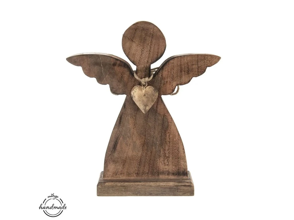 Anjel drevo MANGO kovové srdce - 30,5 cm