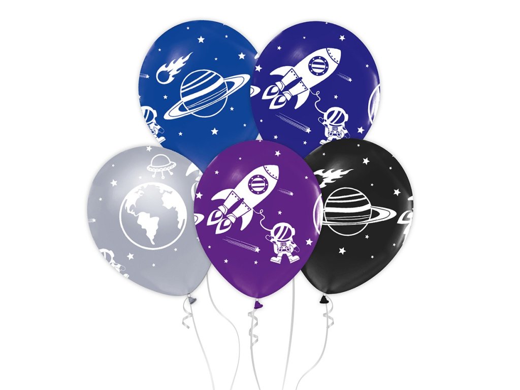 Prémiové héliové balóny. 3 majú vytlačené veselé jednorožce a 2 farebné bodky.