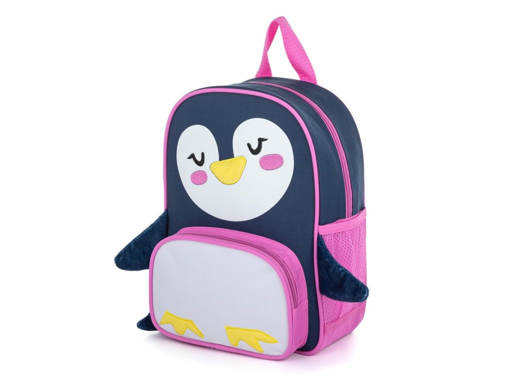 Menší batôžtek vhodný pre deti predškolského veku na voľnočasové aktivity s 3D efektom s motívom tučniaka. Má jedno veľké vrecko, menšie vrecko na desiatu a postranné vrecká na fľašu na pitie. Ideálne pre deti od 3 do 6 rokov.Dodatočné parametre