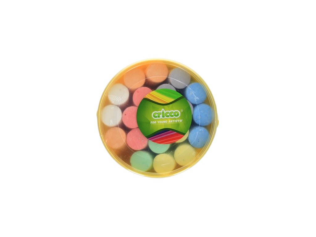 Chodníková krieda pre deti s hrubým okrúhlym prierezom. Perfektná do školy a na ihrisko. Živé žiarivé farby vďaka vysokému obsahu pigmentu. Praktické balenie v tvare vedierka uľahčuje skladovanie a chráni kriedu pred rozbitím.