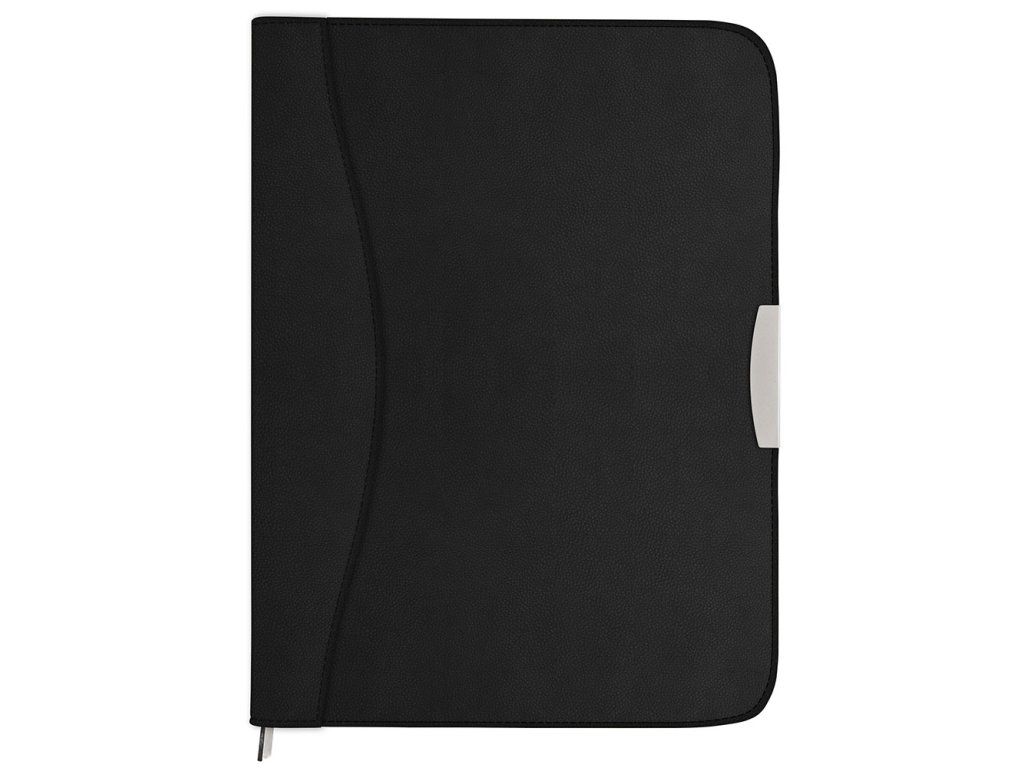 Konferenčné dosky uzatvárateľné na zips. Vnútri blok linajkový A4 s klipom, priehradky na dokumenty a vizitky, pútko na ceruzku. Chrbát 30mm. Materiál PU matná, čierna farba.