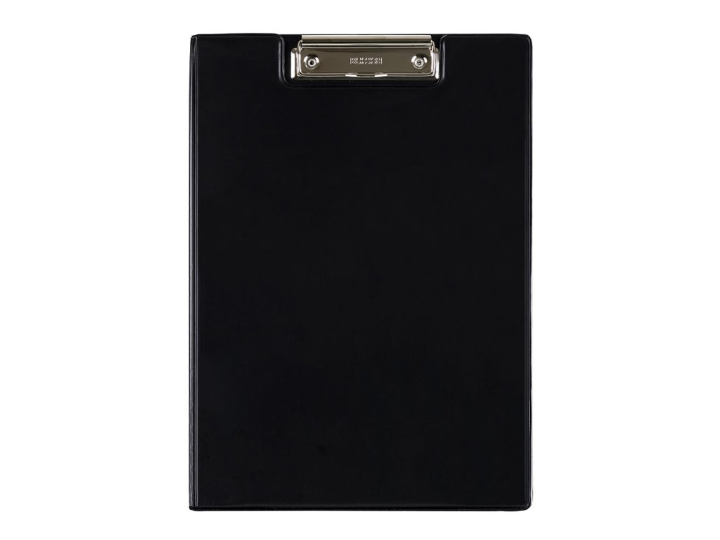 Uzatvárateľná písacia podložka s kovovým klipom, vyrobená z extra pevnej lepenky. Vnútorné priehľadné vrecko