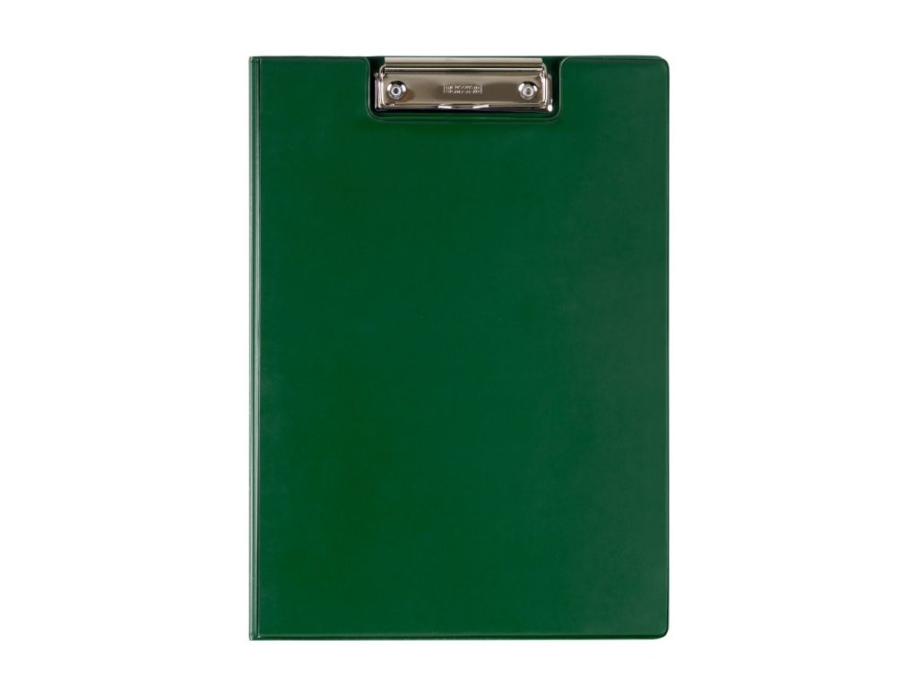 Uzatvárateľná písacia podložka s kovovým klipom, vyrobená z extra pevnej lepenky. Vnútorné priehľadné vrecko