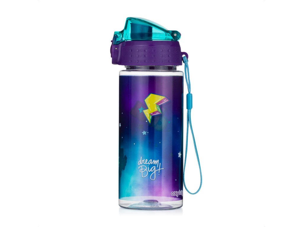 Detská fľaša na pitie vyrobená z kvalitného a zdravotne nezávadného materiálu Tritan. Fľaša je testovaná, neobsahuje BPA ani ftaláty. Vrchná časť fľaše je vybavená zámkom a otváracím patentom, ktorý funguje na princípe zmeny polohy tlačidla (hore = zamknuté, dole = otvorené). Vďaka tomu je fľaša ľahko otvárateľná a zároveň chránená proti nechcenému vyliatiu. Fľaša má objem 500 ml, je vhodná do umývačky na maximálnu teplotu 80 ° C a je ideálna pre deti od 5 rokov. Praktická šnúrka uľahčuje manipuláciu a priemer pítka je 2,5 cm. Upozornenie: Fľaša nie je určená pre sýtené nápoje.