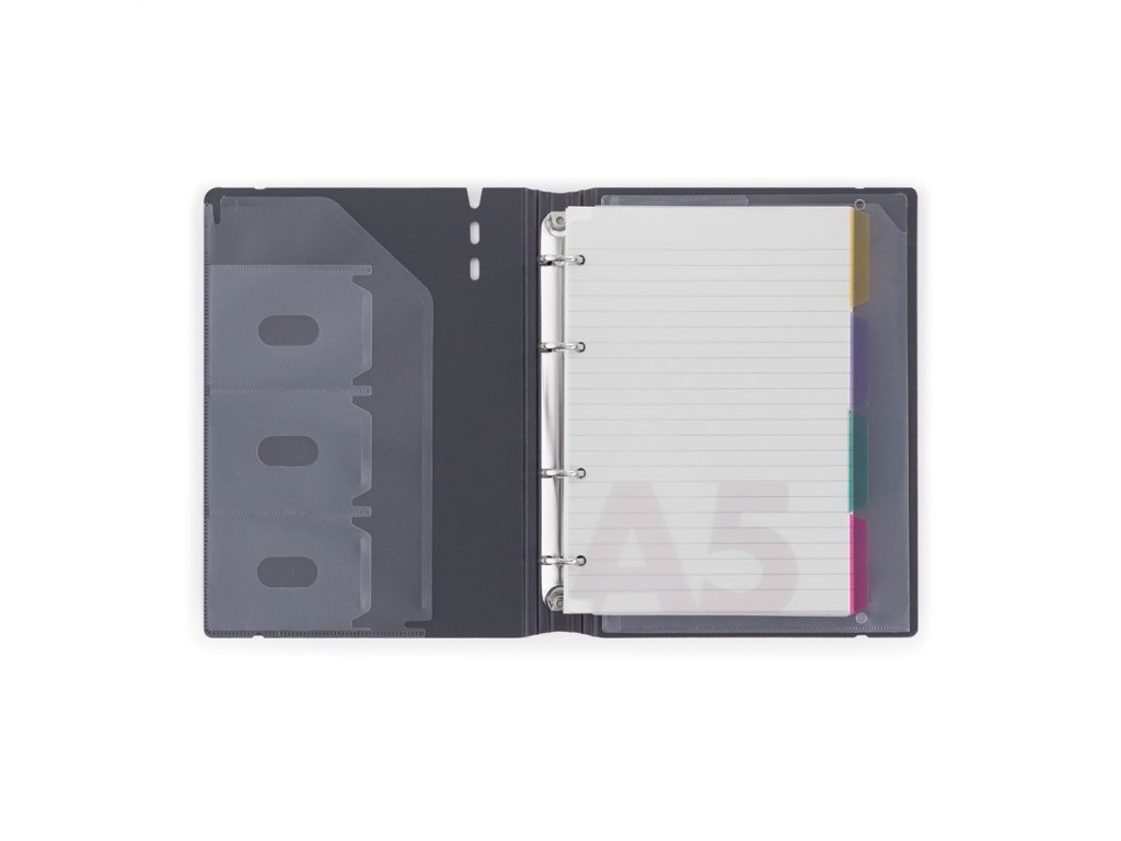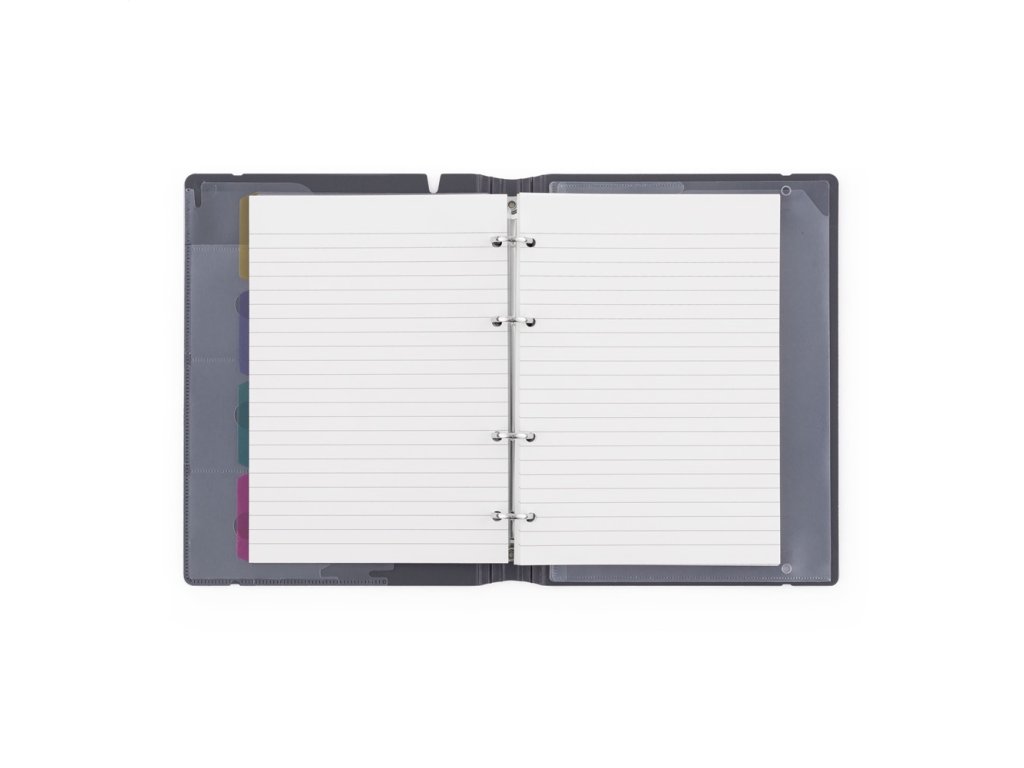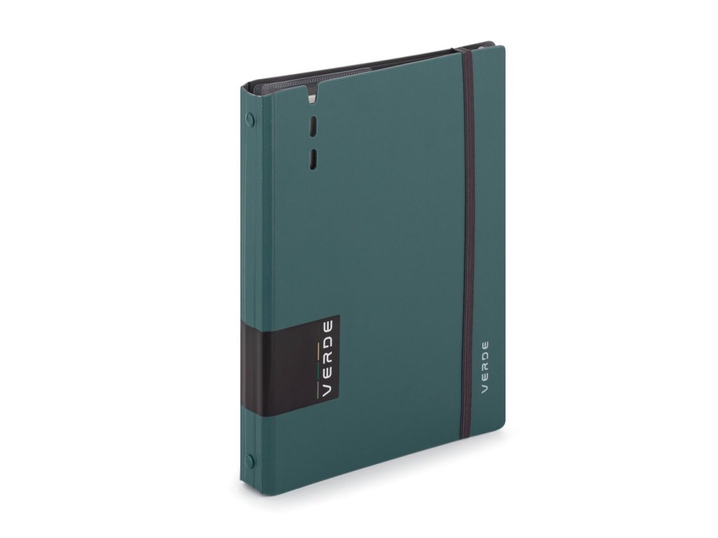 Karis blok z kolekcie Verde: funkčný a štýlový štvorkrúžkový blok vo veľkosti A5, vyrobený z odolného materiálu foam v zelenej farbe. Tento blok ponúka praktické rozraďovače a vnútornú náplň: 30 strán linka, 30 strán bodka, 30 strán čisté (bez potlače). S uzatváraním na elastickú gumičku a vreckami na vizitky.