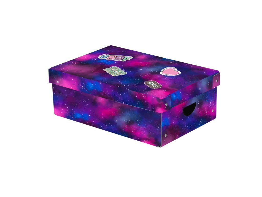 Lamino krabice s vekom a výrezom na úchytky pre ľahšiu manipuláciu. Vhodná na uchovanie rôznych predmetov od dokumentov až po hračky.