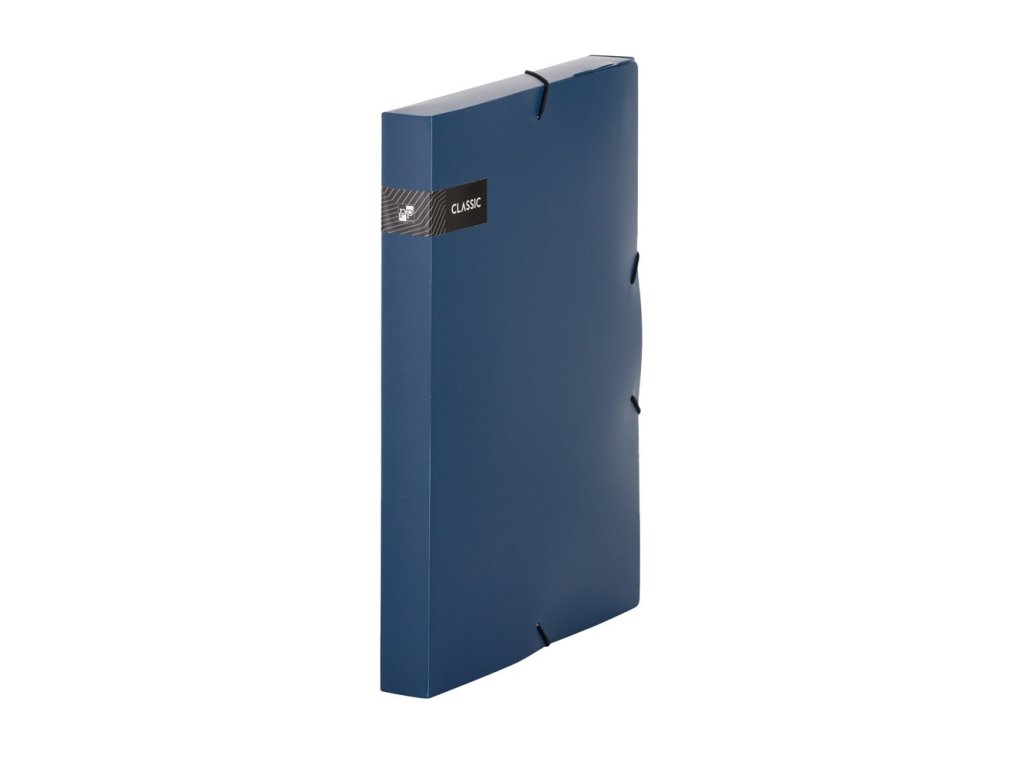 Archivačný box pre dokumenty vo formáte A4 so zaisťovacou gumičkou. Chrbát 3 cm, vyrobený zo silného polypropylénu.