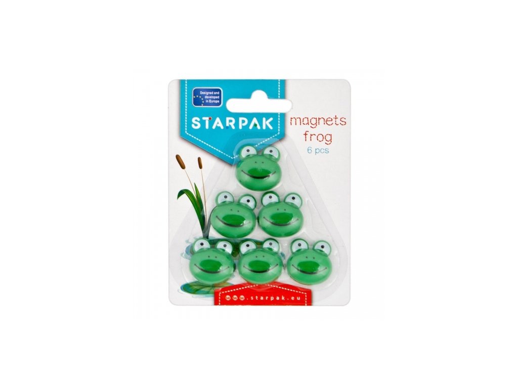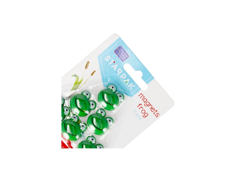 Sada silných magnetov v plastovom obale v bielej a zelenej farbe, zdobená žabami. Užitočné v kancelárii, doma a v práci. Pozrite si aj ďalšie produkty STARPAK do kancelárie. Magnety balené v blistri po 6 ks.Vyrobené z plastu. Výrobok je určený pre deti vo veku: 3+. Rozmery produktu (výška x šírka) [cm]: 12,5x9,5, hmotnosť produktu v balení [kg]: 0,25 kg.