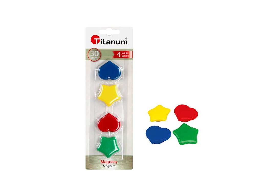 Magnetky na tabule, mix tvarov: hviezda, srdce. Priemer 30 mm / 4 kusy v balení. Mix farieb