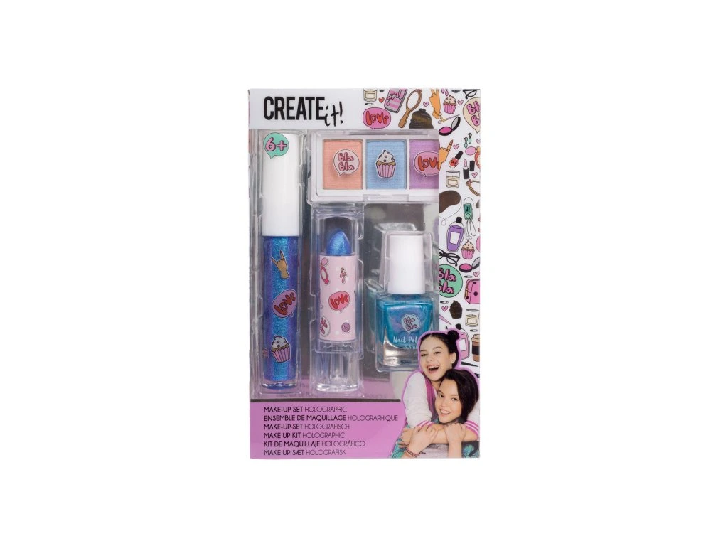 Makeup sada s holografickým efektom ťa rozžiari ako skutočný diamant. Vďaka týmto krásnym produktom sa každé dievča stane malým umeleckým dielom. Súprava obsahuje 4 produkty, ktoré dokonale zvýraznia vzhľad: lesk na pery, rúž, lak na nechty a očné tiene. Stačí nájsť ten správny outfit a úspech je zaručený! Kozmetika je dermatologicky testovaná, bez parabénov a nie je testovaná na zvieratách. Je bezpečná a vhodná pre dievčatá vo veku 6–14 rokov. Balenie je vyrobené zo 100% recyklovateľného PET a FSC certifikovaného papiera a hravý dizajn podporuje kreativitu aj sebavyjadrenie.Dodatočné parametre