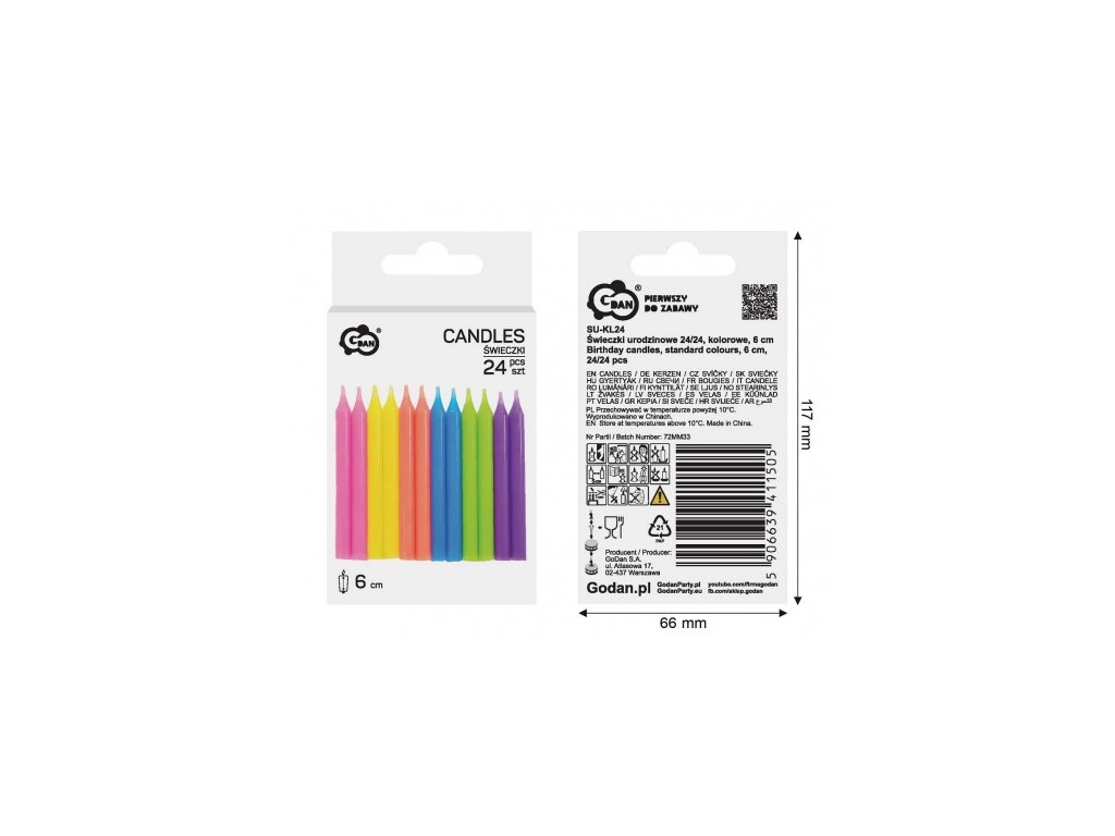 Výška: 6 cm Vzor: žiadny Farba: viacfarebná Množstvo: 24 ks. Výrobca: Godan S.A.