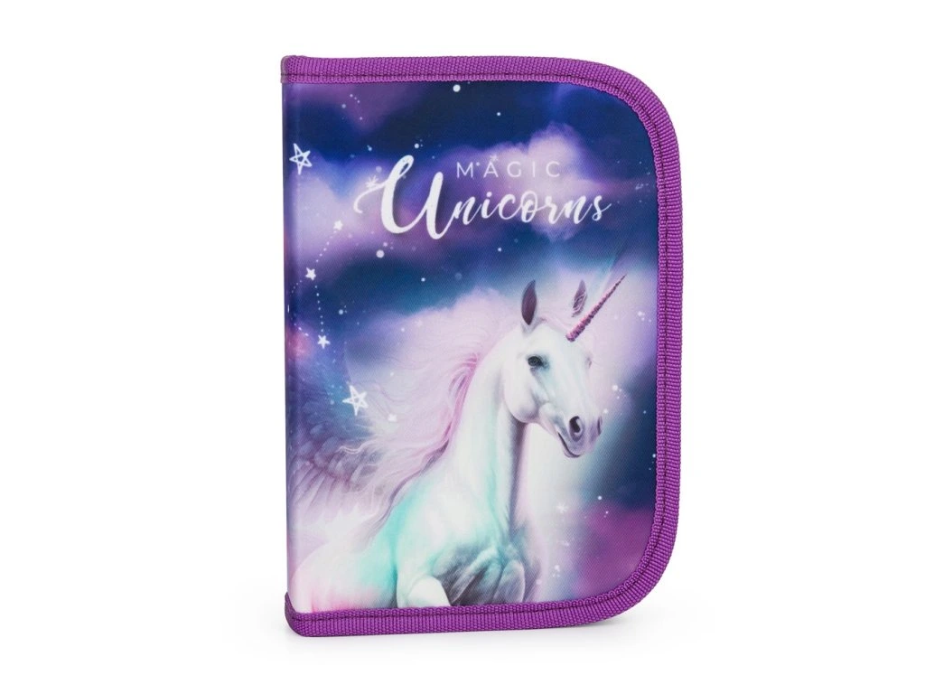 Jednoposchodový školský peračník s 2 chlopňami, prázdny obsahuje 25 gumových pútok na uchytenie písacích potrieb. Na vnútorných chlopniach sú priehľadné fólie na rozvrh hodín.