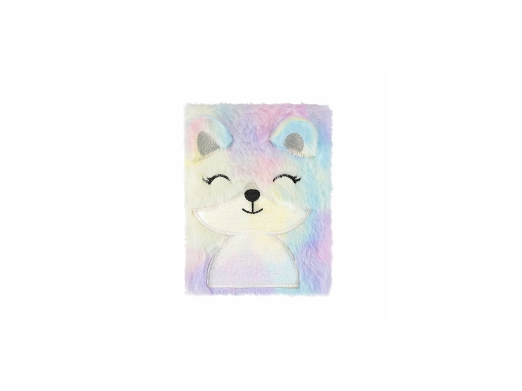 Zápisník je potiahnutý mäkkým plyšom a má roztomilú grafiku líšky.
