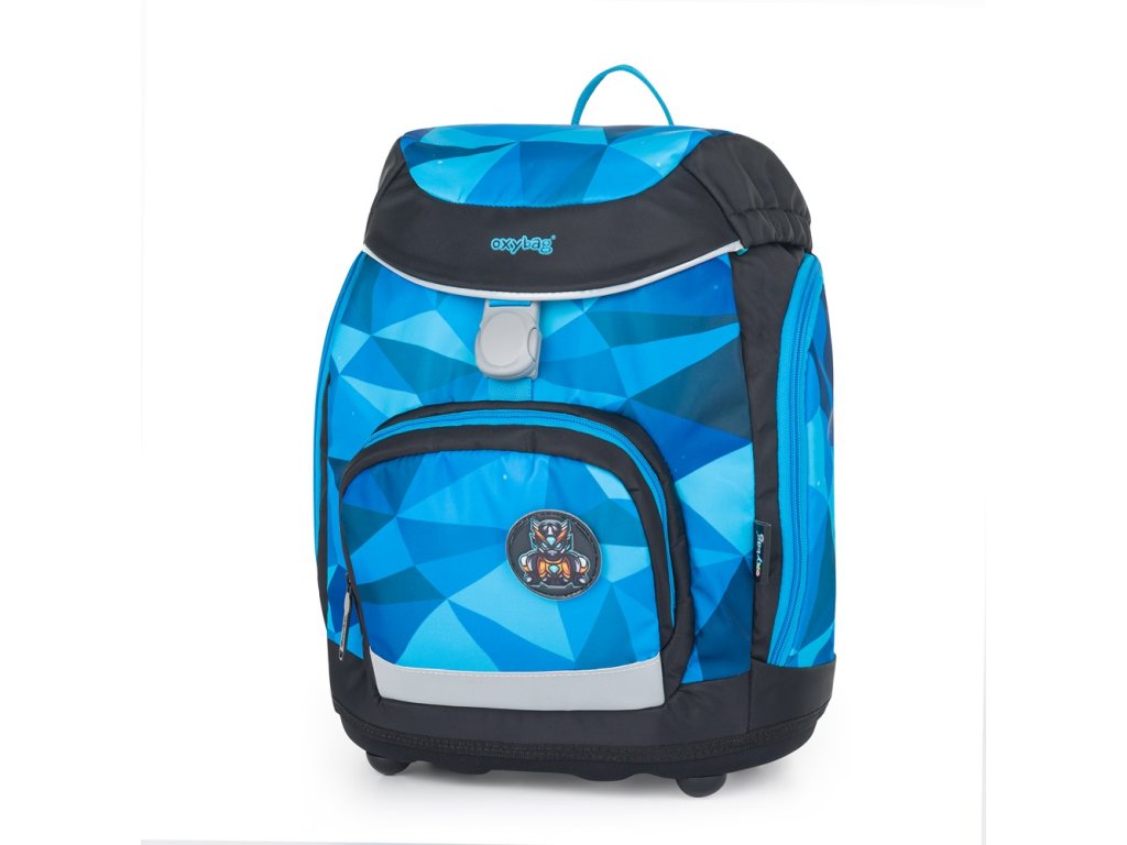 Výhodný set batohu, peračníka, vrecka na cvičky a vymeniteľných placiek. Školský batoh z radu OXY Sherpy je ideálnou voľbou pre deti od 1. do 3. triedy. Batoh má anatomicky tvarovaný chrbtový panel, polstrované ramenné popruhy a nastaviteľný hrudný popruh, čo zaisťuje pohodlie a správne držanie tela. Pevné dno opatrené plastovými nôžkami zabraňuje prevrhnutiu a umožňuje batohu stáť samostatne. Vnútorný rozraďovač pomáha udržať poriadok, zatiaľ čo zapínanie hlavnej komory na sťahovaciu šnúrku a magnetické zapínanie je praktické a ľahko ovládateľné jednou rukou. Bočné vrecká na zips sú ideálne na fľašu s pitím, predné vrecko na desiatu poskytuje ďalší úložný priestor. Nechýbajú reflexné prvky pre väčšiu bezpečnosť dieťaťa. Vďaka vymeniteľným plackám na suchý zips si môže každý školák prispôsobiť design batohu podľa svojho vkusu. Batoh je odporúčaný pre deti vysoké od 121 cm. Dĺžka chrbtového panelu je 33 cm, objem je 28 l, hmotnosť batohu je 950 g a jeho nosnosť je 10 kg.