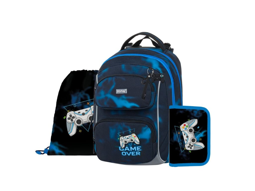 Výhodný set batohu, etue JUMBO a vrecka na cvičky. Školský batoh OXY NEXT je ideálny pre deti od 2. – 4. triedy ZŠ. Disponuje anatomicky tvarovaným chrbtom, polstrovanými ramennými popruhmi a hrudným popruhom. Po stranách nájdete dve väčšie vrecká. Nech už vaše dieťa bude v batohu nosiť čokoľvek, nič sa mu v ňom nestratí, batoh totiž ponúka veľkorysé množstvo najrôznejších vreciek, veľkých alebo aj malých. Hľadanie kľúčov nehrozí, batoh obsahuje aj držiak na kľúče alebo školský čip. Ľahký, pritom dostatočne veľký pre všetky veci, ktoré chce mať každý školák po ruke. Mysleli sme aj na bezpečnosť vašich detí, batoh je vybavený veľkým množstvom reflexných prvkov. Dno plecniaka je opatrené spevneným nepremokavým materiálom. Vhodné pre deti s výškou od 128 cm. Dĺžka chrbtového panelu je 42 cm, objem činí 21 l, hmotnosť batohu je 870 g a jeho nosnosť je 8 kg.