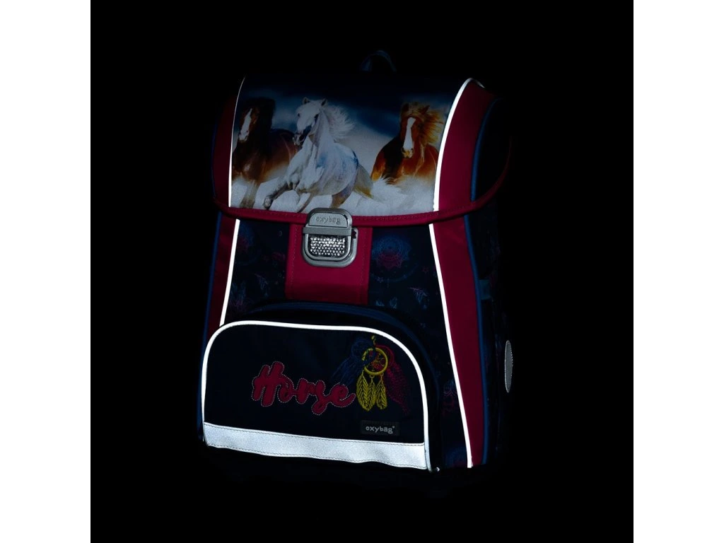 Aktovka: Školská aktovka z radu Premium je anatomicky tvarovaná a zaisťuje tak správne usadenie na chrbte. Vystužený chrbát a vnútorná výstuha udržujú stály tvar batohu. Polstrovanie je z príjemného priedušného materiálu, široké mäkčené popruhy sú navrhnuté tak, aby dokonale priľnuli a rovnomerne zaťažili ramená dieťaťa. Aktovka sa skladá z jednej priestrannej komory, kam sa pohodlne zmestia všetky školské pomôcky pre deti v 1. av 2. triede. Dno plecniaka je z pevného materiálu, chráni tým obsah pred prevrhnutím a vysypaním. Zapínanie je na bezpečnostnú pracku. Predné vrecko je určené na desiatu, nechýba rad reflexných prvkov, vďaka ktorým je aktovka viditeľnejšia. Objem: 28 l. Nosnosť: 8 kg. Vrecko: Školské vrecko na cvičky vyrobené z kvalitného materiálu. Vrecko sa uzatvára stiahnutím šnúrok. Vhodný ako do školy, tak na šport a ďalšie voľnočasové aktivity detí. Peračník: Jednoposchodový školský peračník s dvoma chlopňami bez náplne. Gumové pútka na uchytenie písacích potrieb. Na vnútornej chlopni je priehľadná fólia na rozvrh hodín.