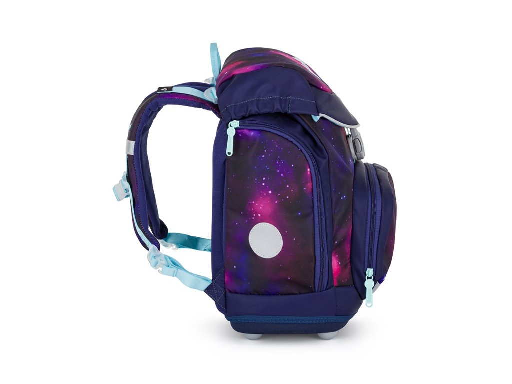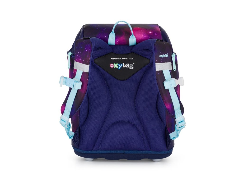 Výhodný set batohu, peračníka, vrecka na cvičky a vymeniteľných placiek. Školský batoh z radu OXY Sherpy je ideálnou voľbou pre deti od 1. do 3. triedy. Batoh má anatomicky tvarovaný chrbtový panel, polstrované ramenné popruhy a nastaviteľný hrudný popruh, čo zaisťuje pohodlie a správne držanie tela. Pevné dno opatrené plastovými nôžkami zabraňuje prevrhnutiu a umožňuje batohu stáť samostatne. Vnútorný rozraďovač pomáha udržať poriadok, zatiaľ čo zapínanie hlavnej komory na sťahovaciu šnúrku a magnetické zapínanie je praktické a ľahko ovládateľné jednou rukou. Bočné vrecká na zips sú ideálne na fľašu s pitím, predné vrecko na desiatu poskytuje ďalší úložný priestor. Nechýbajú reflexné prvky pre väčšiu bezpečnosť dieťaťa. Vďaka vymeniteľným plackám na suchý zips si môže každý školák prispôsobiť design batohu podľa svojho vkusu. Batoh je odporúčaný pre deti vysoké od 121 cm. Dĺžka chrbtového panelu je 33 cm, objem je 28 l, hmotnosť batohu je 950 g a jeho nosnosť je 8 kg.