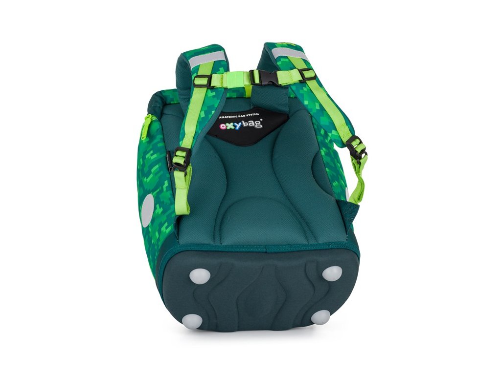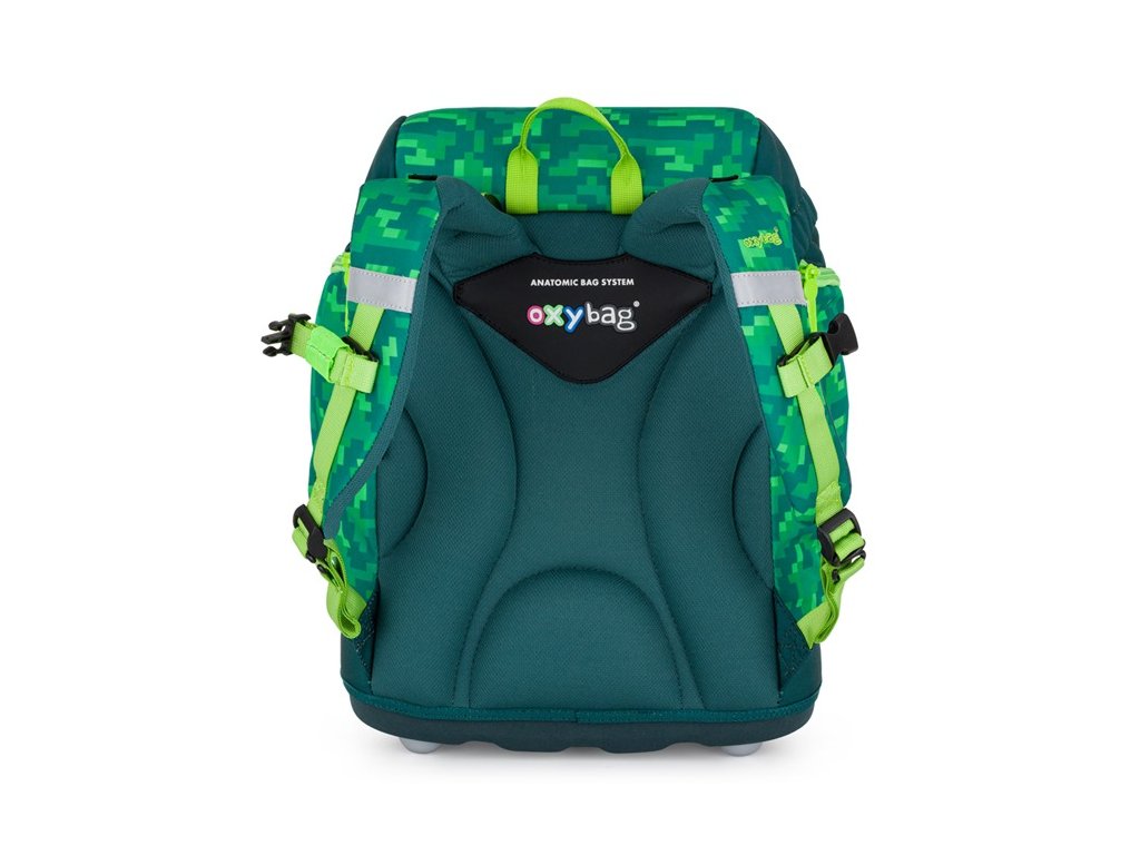 Výhodný set batohu, peračníka, vrecka na cvičky a vymeniteľných placiek. Školský batoh z radu OXY Sherpy je ideálnou voľbou pre deti od 1. do 3. triedy. Batoh má anatomicky tvarovaný chrbtový panel, polstrované ramenné popruhy a nastaviteľný hrudný popruh, čo zaisťuje pohodlie a správne držanie tela. Pevné dno opatrené plastovými nôžkami zabraňuje prevrhnutiu a umožňuje batohu stáť samostatne. Vnútorný rozraďovač pomáha udržať poriadok, zatiaľ čo zapínanie hlavnej komory na sťahovaciu šnúrku a magnetické zapínanie je praktické a ľahko ovládateľné jednou rukou. Bočné vrecká na zips sú ideálne na fľašu s pitím, predné vrecko na desiatu poskytuje ďalší úložný priestor. Nechýbajú reflexné prvky pre väčšiu bezpečnosť dieťaťa. Vďaka vymeniteľným plackám na suchý zips si môže každý školák prispôsobiť design batohu podľa svojho vkusu. Batoh je odporúčaný pre deti vysoké od 121 cm. Dĺžka chrbtového panelu je 33 cm, objem je 28 l, hmotnosť batohu je 950 g a jeho nosnosť je 8 kg.