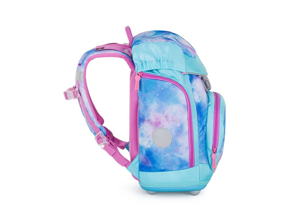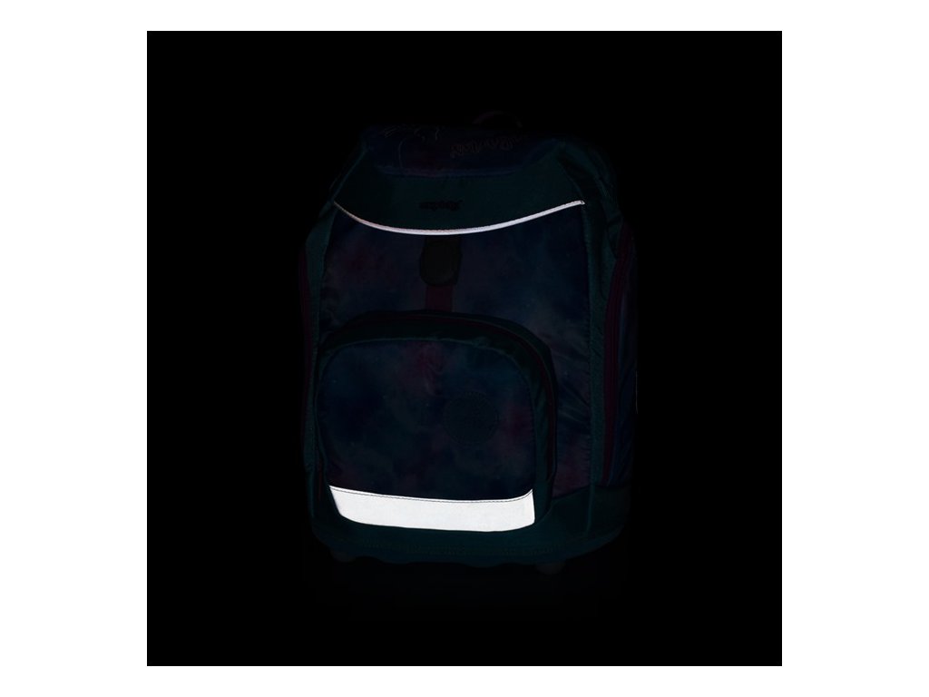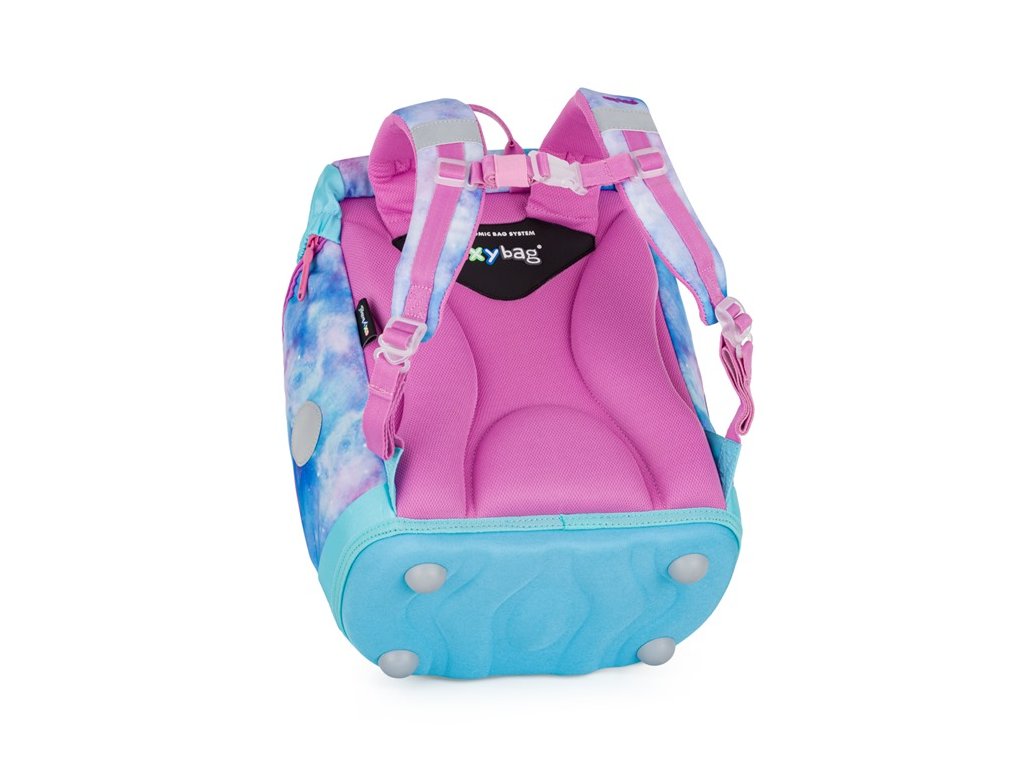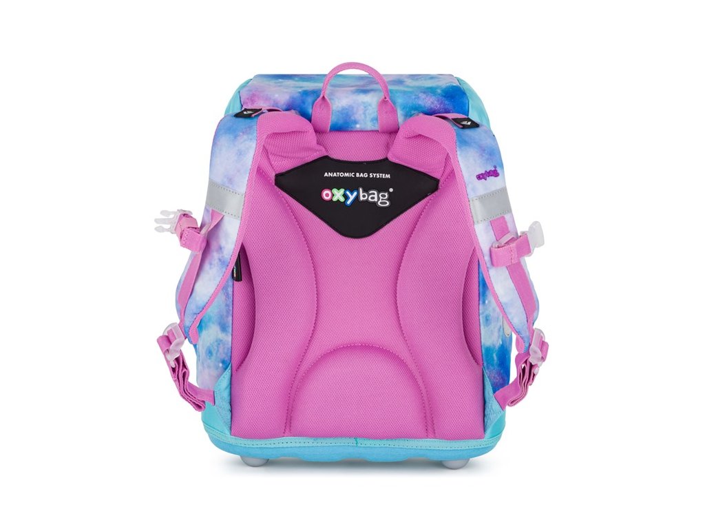Výhodný set batohu, peračníka, vrecka na cvičky a vymeniteľných placiek. Školský batoh z radu OXY Sherpy je ideálnou voľbou pre deti od 1. do 3. triedy. Batoh má anatomicky tvarovaný chrbtový panel, polstrované ramenné popruhy a nastaviteľný hrudný popruh, čo zaisťuje pohodlie a správne držanie tela. Pevné dno opatrené plastovými nôžkami zabraňuje prevrhnutiu a umožňuje batohu stáť samostatne. Vnútorný rozraďovač pomáha udržať poriadok, zatiaľ čo zapínanie hlavnej komory na sťahovaciu šnúrku a magnetické zapínanie je praktické a ľahko ovládateľné jednou rukou. Bočné vrecká na zips sú ideálne na fľašu s pitím, predné vrecko na desiatu poskytuje ďalší úložný priestor. Nechýbajú reflexné prvky pre väčšiu bezpečnosť dieťaťa. Vďaka vymeniteľným plackám na suchý zips si môže každý školák prispôsobiť design batohu podľa svojho vkusu. Batoh je odporúčaný pre deti vysoké od 121 cm. Dĺžka chrbtového panelu je 33 cm, objem je 28 l, hmotnosť batohu je 950 g a jeho nosnosť je 8 kg.