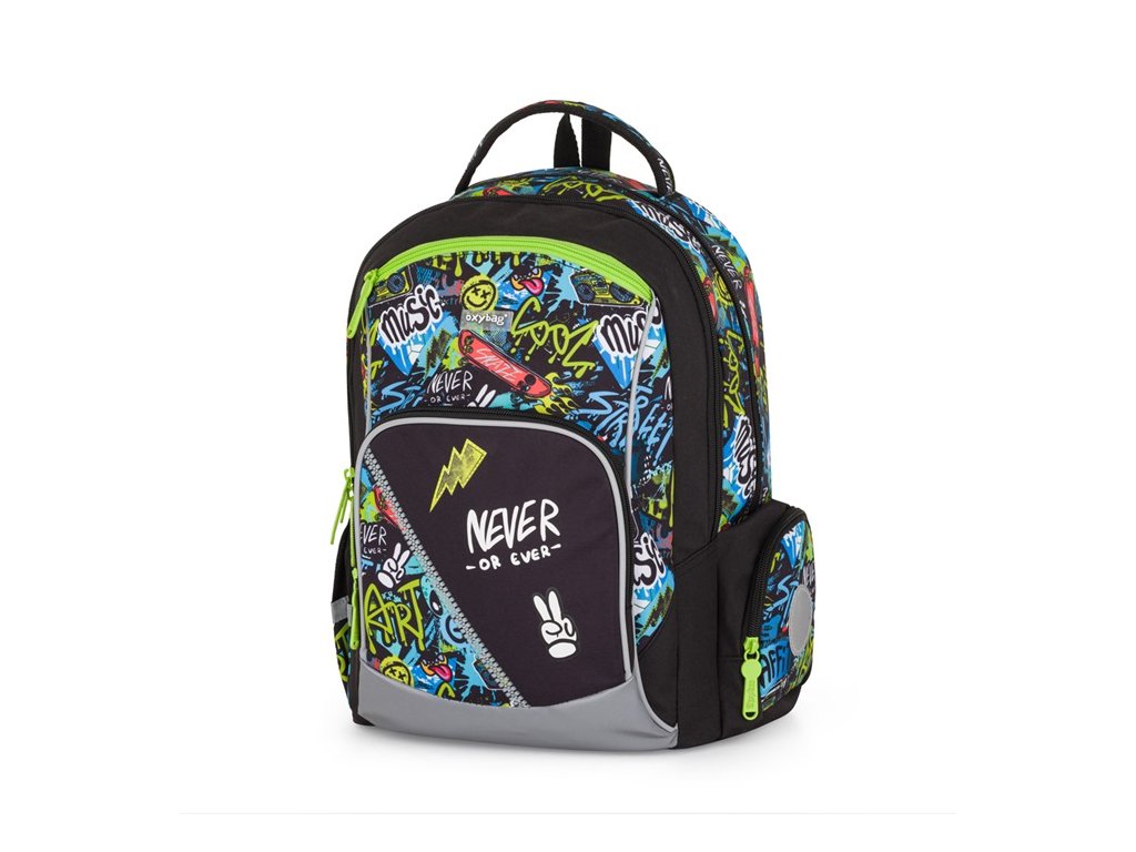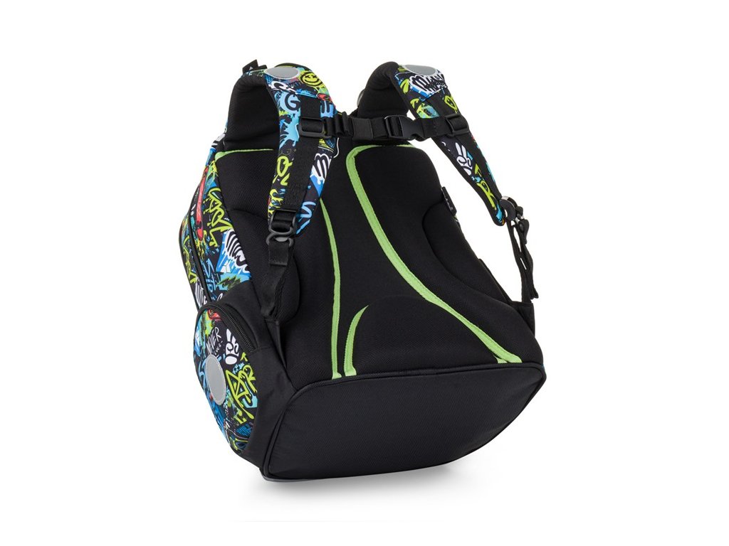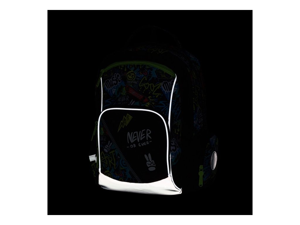 Školský batoh z radu OXY GO na seba jednoducho strhne pozornosť. Dizajnové prevedenie zaujme každého školáka. Perfektný tvar batohu ukrýva nielen anatomicky tvarovaný a priedušný chrbát, ale aj možnosť nastaviť si ramenné popruhy pre lepšie pohodlie a komfortnejšie nosenie. Navyše je batoh vybavený pridanými háčikmi na uchytenie dlhých popruhov. Dve vnútorné vrecká ponúkajú dostatok priestoru pre učebnice, zošity aj veci na voľný čas. Pevné nepremokavé dno zabraňuje ako ušpineniu zvonku, tak pretečeniu čohokoľvek, čo sa vyleje vo vnútri. Po stranách nájdete dve menšie vrecká, jedno otvorené a druhé na zips. Batoh ponúka veľkorysé množstvo najrôznejších vreciek, či už veľkých alebo aj malých. Ľahký, pritom dostatočne veľký pre všetky veci, ktoré chce mať každý školák po ruke. Mysleli sme aj na bezpečnosť vašich detí, preto batohu nechýbajú reflexné prvky. Batoh je ideálny na prvý stupeň do 1. – 3. triedy pre deti vysoké od 125 cm. Dĺžka chrbtového panelu je 39 cm, objem je 22 l, hmotnosť batohu je 930 g a jeho nosnosť je 8 kg.