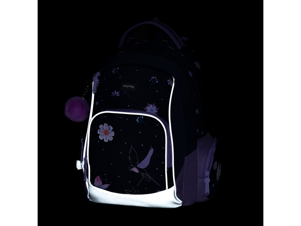 Školský batoh z radu OXY GO na seba jednoducho strhne pozornosť. Dizajnové prevedenie zaujme každého školáka. Perfektný tvar batohu ukrýva nielen anatomicky tvarovaný a priedušný chrbát, ale aj možnosť nastaviť si ramenné popruhy pre lepšie pohodlie a komfortnejšie nosenie. Navyše je batoh vybavený pridanými háčikmi na uchytenie dlhých popruhov. Dve vnútorné vrecká ponúkajú dostatok priestoru pre učebnice, zošity aj veci na voľný čas. Pevné nepremokavé dno zabraňuje ako ušpineniu zvonku, tak pretečeniu čohokoľvek, čo sa vyleje vo vnútri. Po stranách nájdete dve menšie vrecká, jedno otvorené a druhé na zips. Batoh ponúka veľkorysé množstvo najrôznejších vreciek, či už veľkých alebo aj malých. Ľahký, pritom dostatočne veľký pre všetky veci, ktoré chce mať každý školák po ruke. Mysleli sme aj na bezpečnosť vašich detí, preto batohu nechýbajú reflexné prvky. Batoh je ideálny na prvý stupeň do 1. – 3. triedy pre deti vysoké od 125 cm. Dĺžka chrbtového panelu je 39 cm, objem je 22 l, hmotnosť batohu je 930 g a jeho nosnosť je 8 kg.