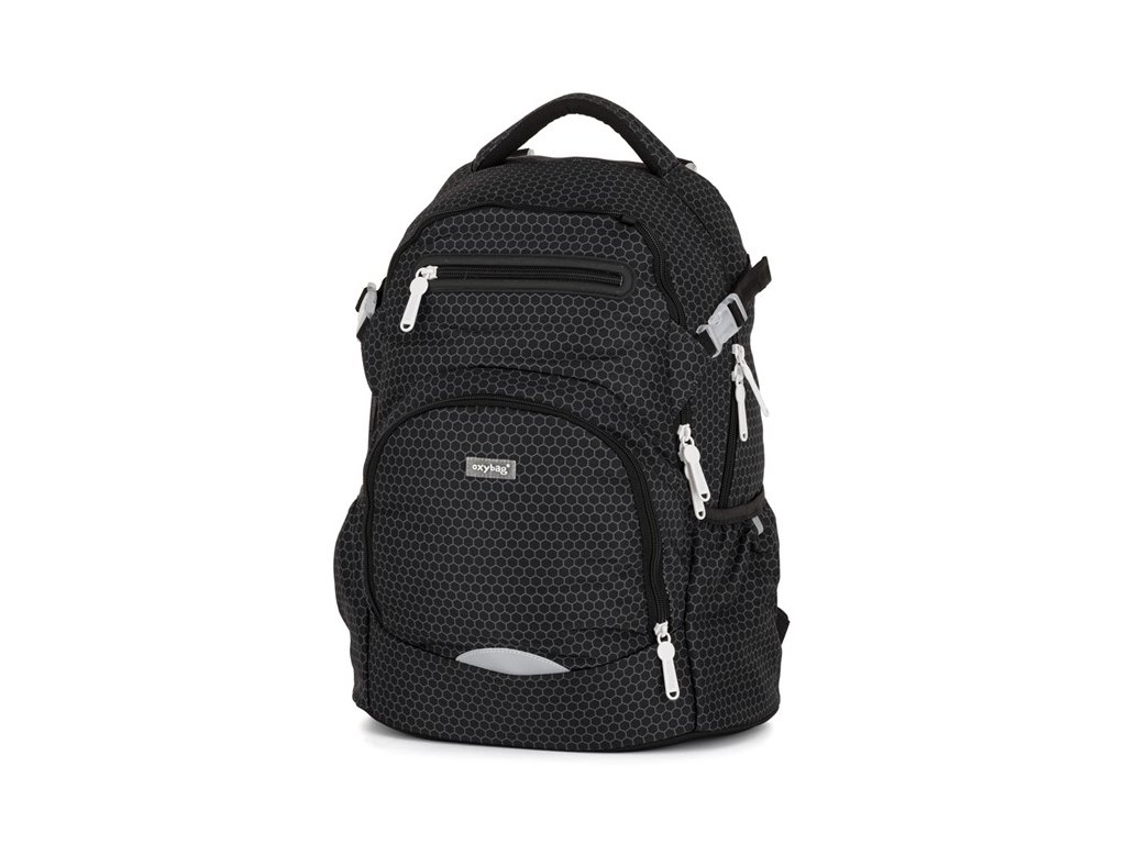 Školský batoh z radu OXY Ombre je ideálny pre školákov od 3. triedy. Anatomicky tvarovaný chrbtový panel, polstrované ramenné popruhy a nastaviteľný hrudný popruh zaistí chrbát ako v bavlnke každému školákovi. Pevné dno zabraňuje prevrhnutiu samostatne stojaceho batohu. Batoh disponuje dvoma priestrannými vreckami na všetky potrebné školské pomôcky. V bočných postranných vreckách na gumu je priestor na fľašu na pitie, ktorá je ľahko dostupná na doplnenie pitného režimu každého školáka. Do predného vrecka sa ľahko schová menšia desiata. Nechýba rad reflexných prvkov. Batoh je vhodný pre deti vysoké od 136 cm. Dĺžka chrbtového panelu je 43 cm, objem je 28 l, hmotnosť batohu je 960 g a jeho nosnosť je 8 kg.