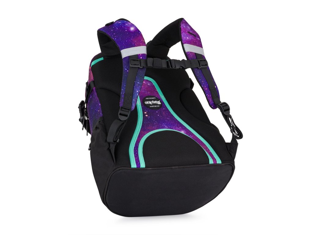 Školský batoh z radu OXY Ombre je ideálny pre školákov od 3. triedy. Anatomicky tvarovaný chrbtový panel, polstrované ramenné popruhy a nastaviteľný hrudný popruh zaistí chrbát ako v bavlnke každému školákovi. Pevné dno zabraňuje prevrhnutiu samostatne stojaceho batohu. Batoh disponuje dvoma priestrannými vreckami na všetky potrebné školské pomôcky. V bočných postranných vreckách na gumu je priestor na fľašu na pitie, ktorá je ľahko dostupná na doplnenie pitného režimu každého školáka. Do predného vrecka sa ľahko schová menšia desiata. Nechýba rad reflexných prvkov. Batoh je vhodný pre deti vysoké od 136 cm. Dĺžka chrbtového panelu je 43 cm, objem je 28 l, hmotnosť batohu je 960 g a jeho nosnosť je 8 kg.