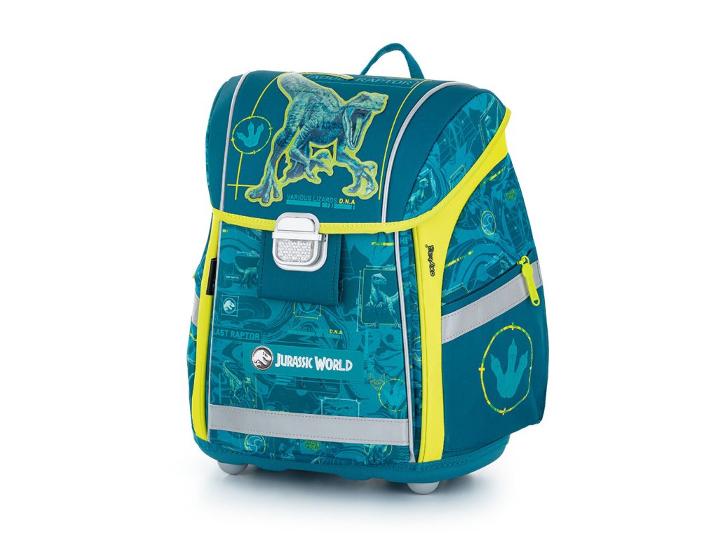 Školský batoh radu Premium Light s motívom Jurassic World ponúka kvalitu, priestor na školské potreby aj odľahčenú konštrukciu pre pohodlnejšie nosenie. Vďaka odľahčenému materiálu váži batoh iba 900 g. Polstrovanie je z príjemného priedušného materiálu, široké mäkčené popruhy sú navrhnuté tak, aby dokonale priľnuli a rovnomerne zaťažili ramená dieťaťa. Pre pohodlnejšie nosenie je batoh ďalej vybavený príťažnými a hrudnými popruhmi. Batohy ocenia predovšetkým tí najmladší školáci s výškou od 121 cm. Nechýbajú ani praktické reflexné prvky, vnútorný rozraďovač aj veľké množstvo vreciek.