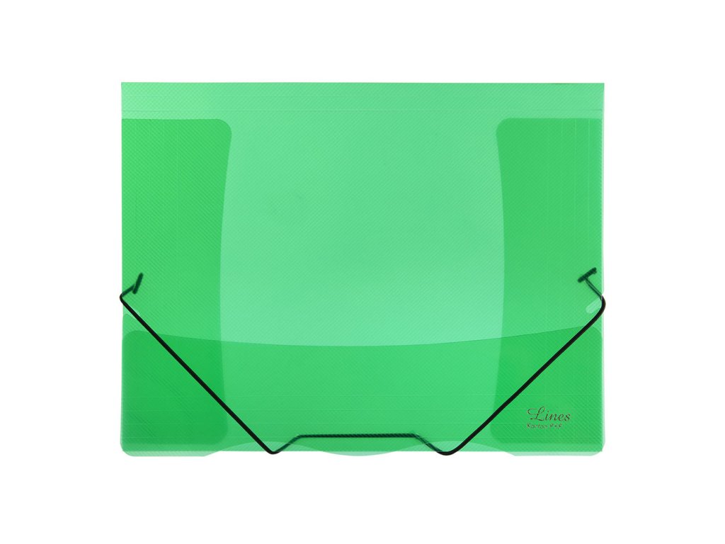 Dosky s tromi chlopňami. Uzatváranie pomocou gumičky. Materiál polypropylén, sila 400 mic. Roztiahnuteľný chrbát až 3,0 cm. Kapacita 250 listov. Pre formát A4. Farby s vysokým leskom
