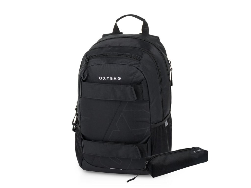 Výhodný set batohu a študentské etue. Batoh: Študentský aj voľnočasový školský plecniak radu OXY SPORT vyniká ergonomicky tvarovaným chrbtom, nastaviteľnými polstrovanými ramennými popruhmi a hrudným popruhom, vďaka ktorým sa pohodlne nosia. Batoh sa skladá z dvoch hlavných komôr a jedného menšieho predného vrecka s pevnými zipsami a praktickými pútkami. Vnútri batohu je vystužené vrecko na notebook, karabína na kľúče, menšie vrecko na drobnosti a skryté vrecko na chrbte. Nechýba tiež bočné vrecko na fľašu na pitie a množstvo reflexných prvkov, vďaka ktorým je batoh lepšie viditeľný. Batoh je ideálny ako pre školákov na druhom stupni tak aj pre voľnočasové aktivity študentov a dospelých. Dĺžka chrbtového panelu je 46 cm, objem je 24 l, hmotnosť batohu je 870 g a jeho nosnosť je 8 kg. Etue: Študentské púzdro na písacie potreby s praktickou elastickou gumou, uzatváranie na zips.