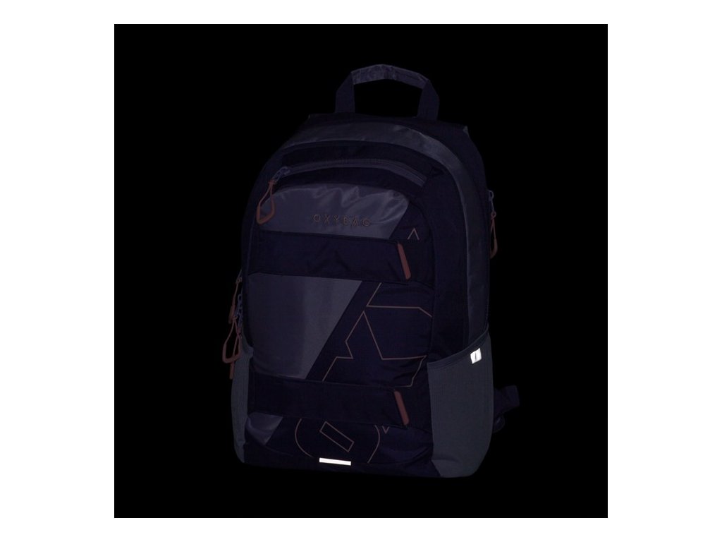 Výhodný set batohu a študentské etue. Batoh: Študentský aj voľnočasový školský plecniak radu OXY SPORT vyniká ergonomicky tvarovaným chrbtom, nastaviteľnými polstrovanými ramennými popruhmi a hrudným popruhom, vďaka ktorým sa pohodlne nosia. Batoh sa skladá z dvoch hlavných komôr a jedného menšieho predného vrecka s pevnými zipsami a praktickými pútkami. Vnútri batohu je vystužené vrecko na notebook, karabína na kľúče, menšie vrecko na drobnosti a skryté vrecko na chrbte. Nechýba tiež bočné vrecko na fľašu na pitie a množstvo reflexných prvkov, vďaka ktorým je batoh lepšie viditeľný. Batoh je ideálny ako pre školákov na druhom stupni tak aj pre voľnočasové aktivity študentov a dospelých. Dĺžka chrbtového panelu je 46 cm, objem je 24 l, hmotnosť batohu je 870 g a jeho nosnosť je 8 kg. Etue: Študentské púzdro na písacie potreby s praktickou elastickou gumou, uzatváranie na zips.