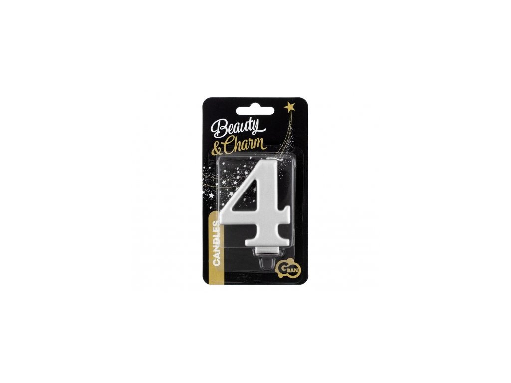 Sviečka číslo 4 – strieborná metalíza – 8 cm – 452874