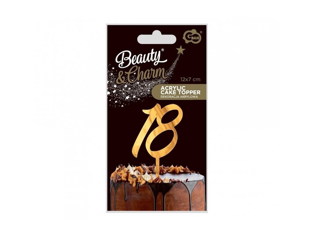 Papierová dekorácia - tortový zápich k 18. narodeninám. Elegantná zlatá v glamour štýle vytvárajú fenomenálnu kombináciu. Zápich k osemnástke, výročiu alebo jubileu bude na torte vyzerať krásne a poteší hostí.
