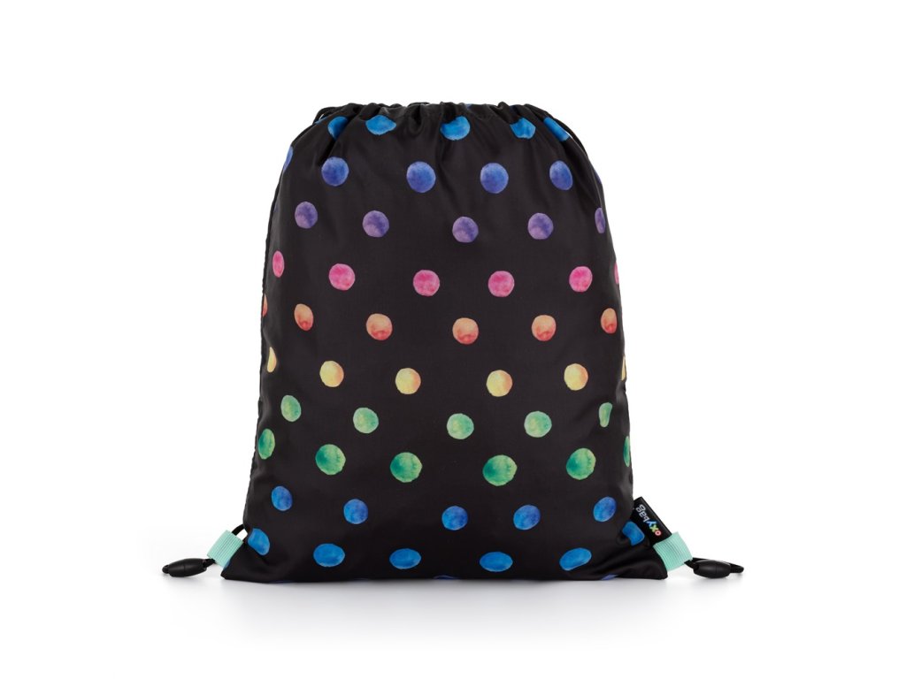 Vrecko na prezuvky. Uzatváranie stiahnutím šnúrok, možnosť nosiť aj na chrbte alebo pripevniť k školskému batohu. Materiál 100% polyester.