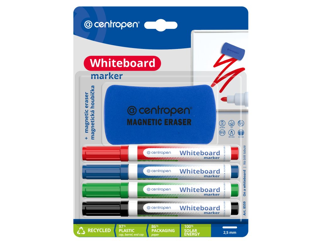 - značkovač na biele smaltované tabule a na nepórovité povrchy