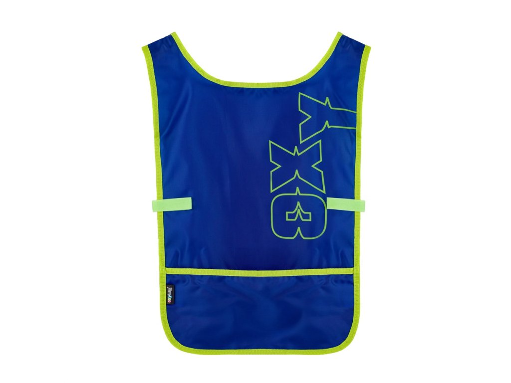 Zástera pončodo výtvarnej výchovy či na iné tvoriace aktivity. Obliekanie cez hlavu, po stranách zapínanie na cvok. Vpredu jedno priestranné vrecko. Materiál 100% polyester.