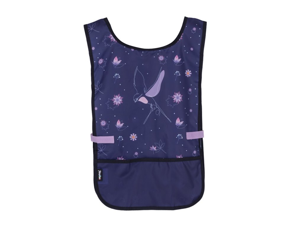 Zástera pončo do výtvarnej výchovy či na iné tvoriace aktivity. Obliekanie cez hlavu, po stranách zapínanie na cvok. Vpredu jedno priestranné vrecko. Materiál 100% polyester.