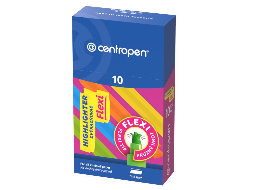 - veľkokapacitný zvýrazňovač so super pružným hrotom